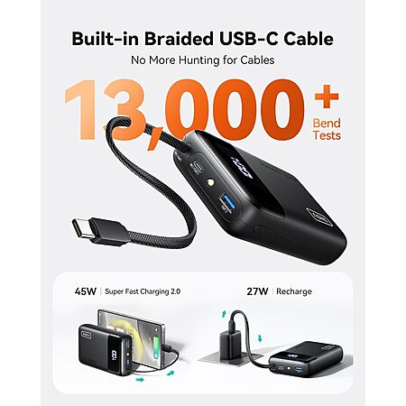 INIU 20000mAh 45W Power Bank w/ Built-In USB-C Cable