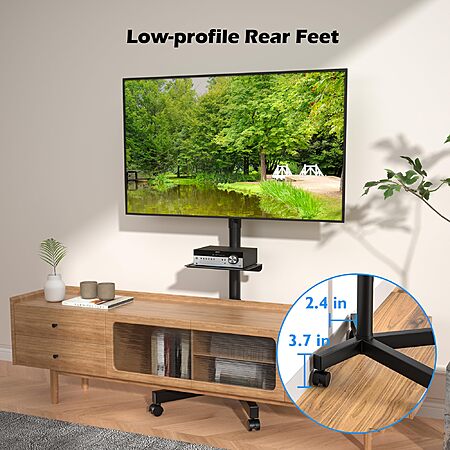 STURDY AND SECURE TV STAND - Equipped with four durable 360° locking wheels, this rolling TV stand provides easy mobility while ensuring your TV stays securely in place, giving you peace of mind whether in a home or office setting