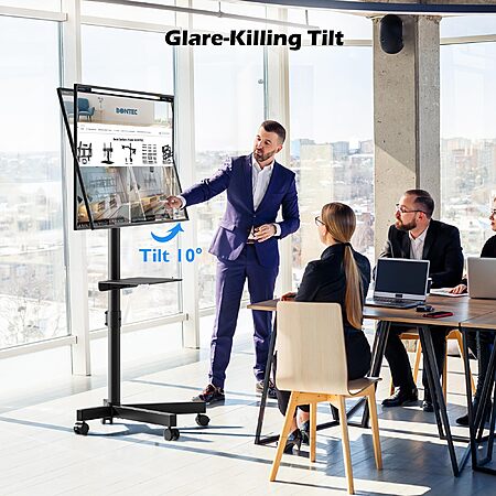 ENHANCED TV STAND VIEWING EXPERIENCE - Featuring a tilt function, this TV stand allows you to adjust the screen up to 10° for a glare-free, comfortable viewing angle, whether you're watching your favorite shows or delivering presentations