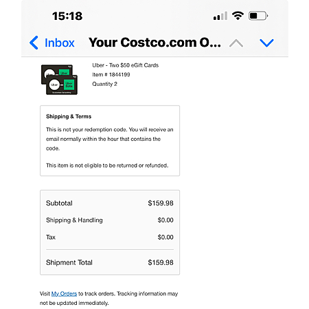 Apple AirPods Pro 3 - $154.97 plus tax and Uber fees ($219.99 - $25 Uber promo - $40.02 saved with Uber gift cards from Costco = $154.97)