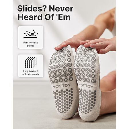 Product Description from Amazon- Superior Non-Slip Performance: Experience reliable traction with our YOTTOY yoga socks featuring an innovative cross-shaped grip. These non slip socks and grip socks for women ensure maximum stability during yoga, Pilates, and barre workouts, keeping you secure on any surface