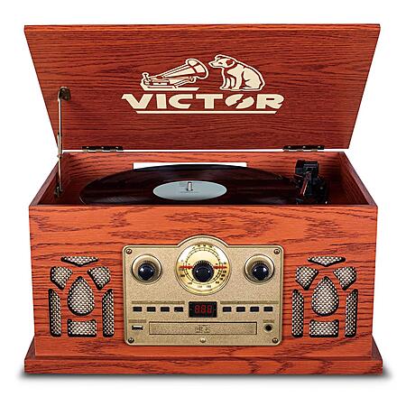 Victor 7-in-1 Bluetooth AM/FM Radio Wooden Turntable System (2 Colors) $79.99 + Free Shipping