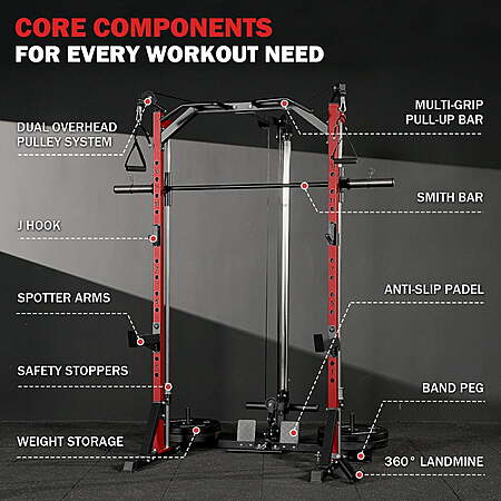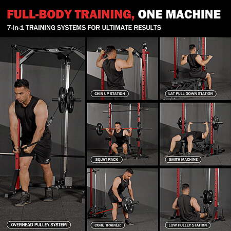 Mikolo Compact 7-IN-1 Smith Machine With Cable Crossover System, 1000LBS $329.98