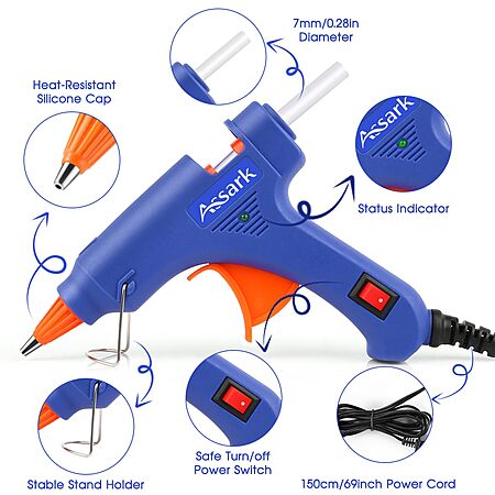 Assark 20W Mini Hot Glue Gun Kit w/ 30 Glue Sticks (Blue) on sale for $8.05 - $1.61 off when you enter the coupon code