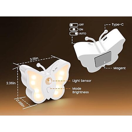 LOFTEK Butterfly Night Light, Rechargeable Motion Sensor, 2 Color Modes $3.19