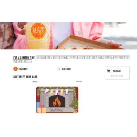 on orders of $20 or more (subtotal before taxes and fees). Enter code LARGE in the cart on the Blaze Pizza app or blazepizza.com before checkout to redeem. Only at participating locations through