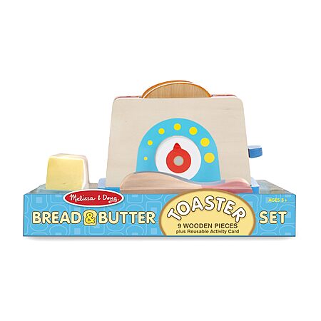 $11.99*:Melissa & Doug Bread and Butter Toaster Set (9 pcs) - Wooden Play Food and Kitchen Accessories