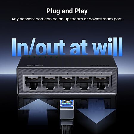 Model: UGREEN Ethernet Switch, 5 Port Gigabit Ethernet Splitter, Plug & Play, Wall Mount & Desktop Network Switch Hub, Unmanaged, Compact, with LED, Fanless Quiet, for Internet Cable, Laptop, Router, NAS