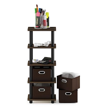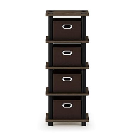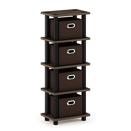 $9.9*:FURINNO Turn-N-Tube 4-Bins System Rack, Columbia Walnut/Black/Dark Brown