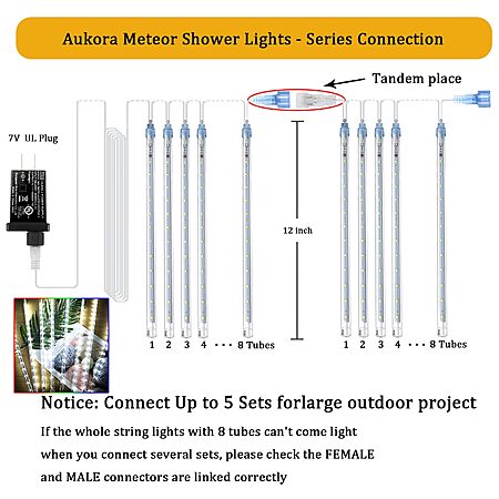 Product Description from Amazon:- Fantasy Meteor Shower Effect: every bulb of this Christmas decor lights outside turns on and out one by one in sequence and quickly just like meteor shower or falling snow in the night sky, and you can connect more sets (up to 5) together to meet your actual needs