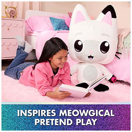 | Product Description: | Create your own meow-mazing Gabby's Dollhouse adventures with the Jumbo Pandy Paws Plush! This delightful stuffed animal stands over 2-feet tall, bringing the magic of Gabby's Dollhouse: The Movie to life. With his super-soft fur and fine embroidered details, Pandy is an irresistible companion for pretend play and storytelling. This set is a fun-filled way to inspire pretend play and meow-mazing explorations, with adorable Gabby cat toys for kids. Gabbys dollhouse toys are purrfect gifts for kids to relive cherished Gabby movie moments, and for creating new adventures in Gabby's dollhouse, with toddler toys for kids, like doll house accessories & furniture, meow-mazing cat friend plushies, mermaid toys & cat-tastic learning toys (each sold separately) Gabby Movie Magic: The Jumbo Pandy Paws plush stands over 2-feet tall and looks just like he does in the movie, so you can bring home the magic of Gabby's Dollhouse: The Movie Meow-mazing Details: Featuring super-soft fur and a lovable face, this 32-inch Pandy plush showcases fine embroidered details, making him a ca-terrific addition to any child's playtime Unlimited Hug Attacks: This plushie is the purrfect companion for watching episodes of Gabby's Dollhouse and going on pretend play adventures during the day, and unlimited hug attacks at bedtime Build a Dollhouse World: With everything from themed rooms and dollhouse furniture to toy figures & playsets, create a dollhouse world that helps kids develop their imagination through pretend play Collect Them All: Gabby's Dollhouse toys are preschool toys for kids that love playing with dolls & accessories, surprise toys, stuffed animals, girl toys, jigsaw puzzles & board games Includes: 1 Plush Toy Covered by the Spin Master Care Commitment. If you have a problem with a Spin Master product that you purchased from an authorized seller, we’ll resolve it! Because Spin Master is unable to control the quality of products sold by unauthorized sellers, unless otherwise prohibited by law, the Care Commitment is not available for products purchased from unauthorized sellers. The Care Commitment is limited to the original end-user purchaser. You may also be required to provide proof of purchase and/or a picture of your product to Spin Master to verify eligibility. Spin Master reserves the right to verify information, require a valid proof of purchase, and to deny request in its discretion |