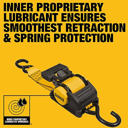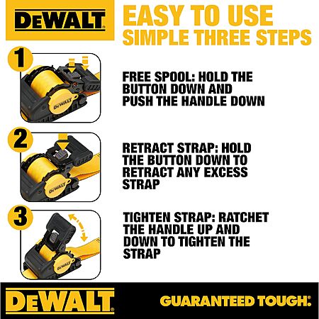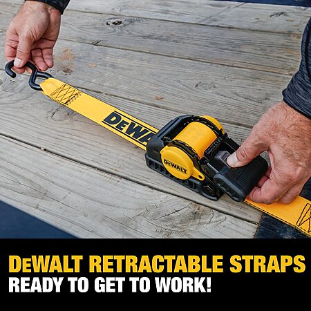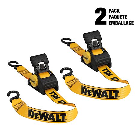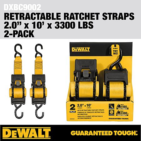 Amazon.com has DEWALT DXBC9002 Black/Yellow 2" x 10' Auto Retractable Ratchet Straps - 1,100 lb Safe Working Load / 3,300 lb Break Strength, 2 Pack on sale for $48.24.