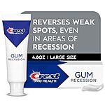 Amazon has 4.6-Oz Crest Pro-Health Gum Recession Toothpaste for $8.97 - $4.98 when you 'clip' the coupon on product page - $0.45 (5% Off) when you check out via Subscribe & Save = $3.54. Shipping is free with Prime or on orders $35+.