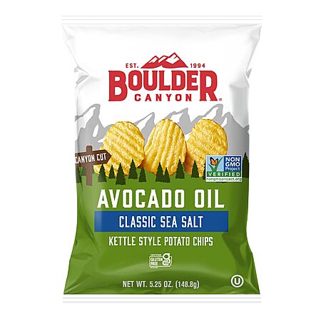 $2.79 Boulder Canyon Avocado Oil Kettle Style Potato Chips, Classic Sea Salt, 5.25 Ounce Amazon
