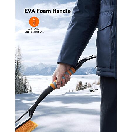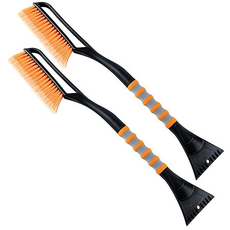 $16.99*:AstroAI 2 Pack 27" Snow Brush and Ice Scrapers for Car Windshield, Detachable Snow Scrapers with Ergonomic Foam Grip (Heavy Duty ABS, PVC Brush, Orange)