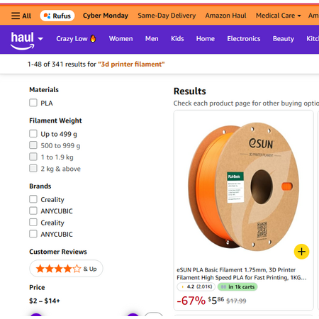 Shiny Red and Black Rainbow Color Filament, PLA, 250g for $2.79 (must go through Haul as well):