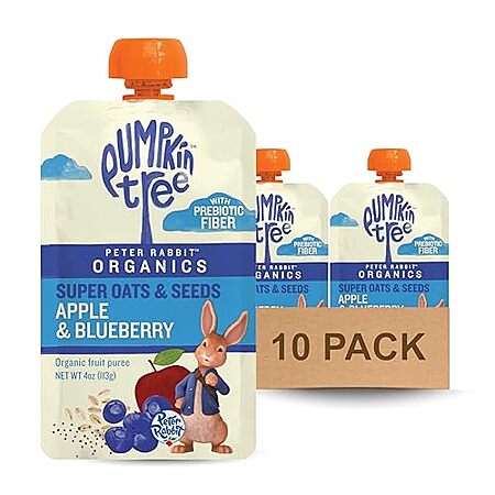 [S&S] $14.95: 10-Pack 4-Oz Pumpkin Tree Peter Rabbit Organics SUPER Oats & Seeds (Apple & Blueberry) at Amazon ($1.49 each)