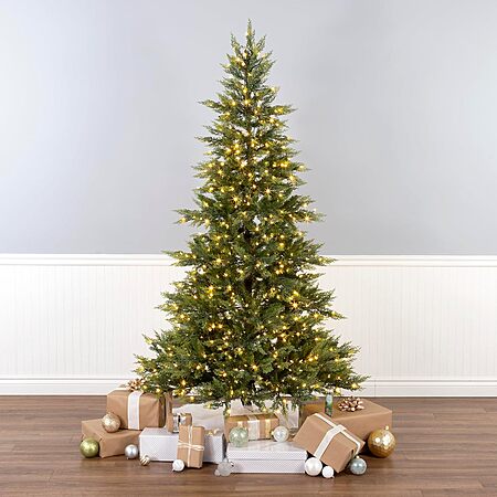6.5 Feet National Tree Company Pre-lit Feel Real Artificial Christmas Tree, Green, Festive Fern, 450 Clear Lights, Includes Stand $61.94