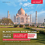 Air India Cyber Week offer a savings of up to 20% on flights to India travelling from the US or Canada.