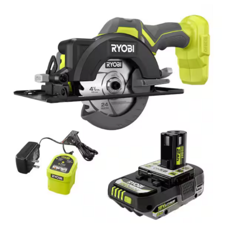 RYOBI ONE+ 18V Cordless 4-1/2 in. Circular Saw Kit with 2 Ah Battery and Charger $49.88 Home Depot