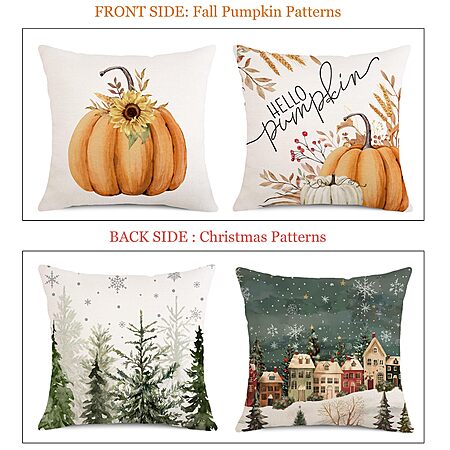 • 【Festive Double-Sided Designs】Celebrate two seasons with one set! Each pillow cover features a unique autumn harvest design on one side and a charming Christmas scene on the other—flip to match your seasonal style instantly.