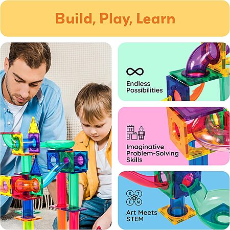 100-Piece PicassoTiles Magnetic Tile Marble Run Building Toy Set $29.39, 100-Piece Magnetic Tile Classic Building Set $29.99 + Free Shipping w/ Prime or on $35+
