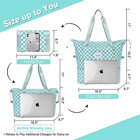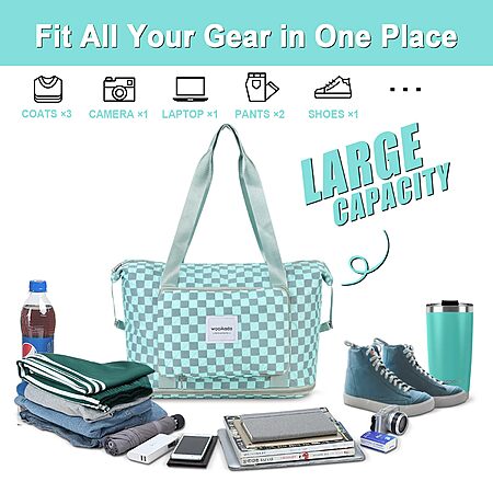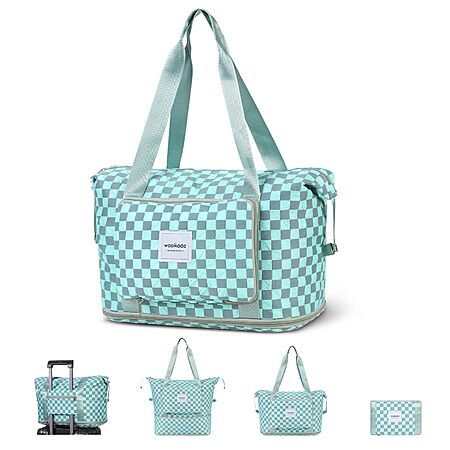 WOOMADA Foldable Large Travel Duffel Bag (turquoise checkerboard) $13.99 + Free Shipping w/ Prime or on $35+