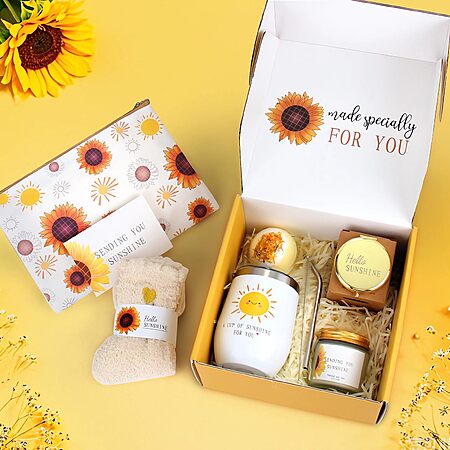 Product Description from Amazon:- Illuminate her day with Happy Birthday Gifts for Women: Brighten her world with a thoughtfully curated sunflower gift basket designed to inspire joy and positivity. Each vibrant yellow item symbolizes warmth and cheer, making this gift box a perfect expression of love and appreciation. These sunshine gift baskets will be unique birthday gifts for women mom sister daughter bestie bff best friend coworker teen girl or friends, perfect as womens birthday gifts, christmas gifts for women, personalized gifts, mothers day gifts, Teacher Appreciation Gifts