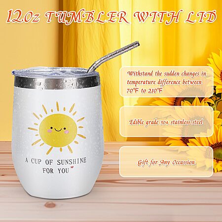 - Personalized 8pcs Get Well Gifts for Women: Treat her to an indulgent experience with gift baskets for women: 1* 12oz insulated tumbler with the uplifting quote "A Cup of Sunshine for You", 1* Straw and cup brush, 1* Soft fuzzy socks, 1* Scented candle, 1* Elegant gold mirror, 1* Stylish cosmetic bag, 1* bath bomb, 1* Heartfelt greeting card. Each item is chosen with care to bring her relaxation, happiness, and a touch of luxury, ideal as gifts for women birthday unique, mothers day gifts, mothers day gifts for mom grandma wife daughter sister
