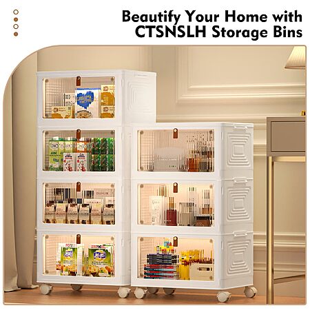 Model: CTSNSLH 4 Tier Plastic Storage Bins and Boxes Organizer - Stackable with Lids for Bedroom, Living Room, Office - Foldable Containers