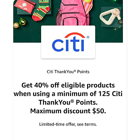 save 40% with CitiThankYou points (these are targeted offers and your accounts must be linked)