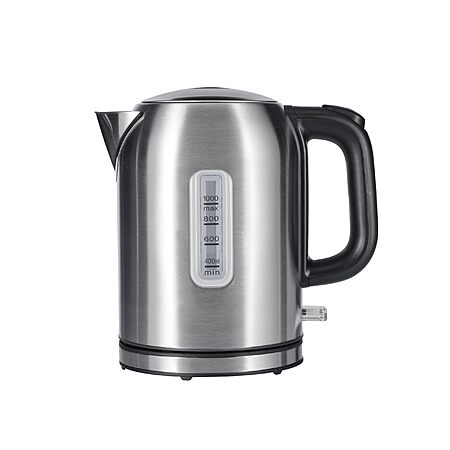 - 1.0 liter electric kettle for heating water for coffee, tea, instant soup and more; black and stainless steel exterior
