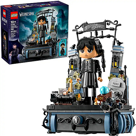 Mysteries and mayhem await kids ages 10 and up in the Wednesday Addams Figure (76780) set. This LEGO Wednesday gift set features a collectible, posable model with movable head, arms and feet, plus 2 faces and 2 outfits so the figure can be rebuilt. The set includes her loyal sidekick Thing, a stand with toy black dahlias and 2 hidden spaces to hold treasures like the Rave'N Dance dress or her uniform. There's also the Nevermore Academy gate and Wednesday's accessories, including her typewriter, Nero's grave, a crystal ball and more. Discover other LEGO Wednesday Addams sets (sold separately) for more play options. This model also makes a cool birthday gift for kids. A digital version of the building instructions can be found on the LEGO Builder app. There's also a QR code sticker for the back of the display base that can be scanned so fans can easily access the digital instructions to rebuild or change Wednesday's outfit. The app lets kids zoom in and rotate models in 3D, and more. Contains 702 pieces.