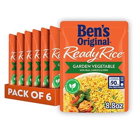 BEN'S ORIGINAL Ready Rice Garden Vegetable Flavored Rice, Easy Dinner Side, 8.8 oz Pouch (Pack of 6) for $5.8 $5.82
