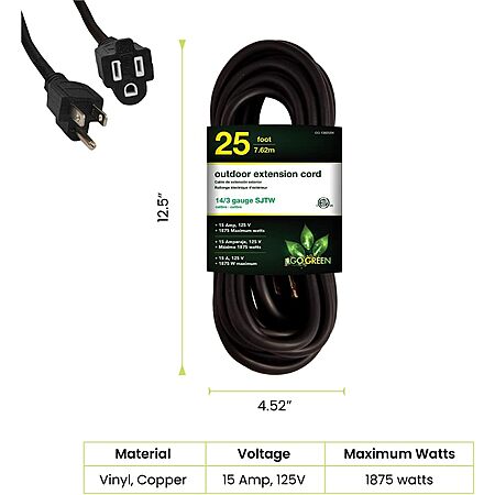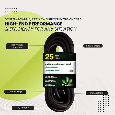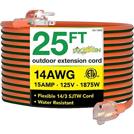 25' GoGreen Power 14/3 SJTW Outdoor Extension Cord (Orange) $11.25 + Free Shipping w/ Prime or on $35+