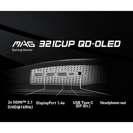 Model: MSI MAG 321CUP QD-OLED 32-inch 3840 x 2160 (UHD) Computer Monitor, 165Hz, Adaptive-Synch, HDMI, DP Port, VESA Mountable, Tilt, Speaker, 0.03ms, Black