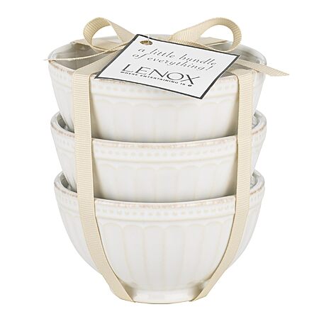 Amazon [amazon.com] has 3-pc Lenox Mini French Perle Groove Bowls (White) on sale for $8.99. Shipping is free w/ Prime or on orders $35+.