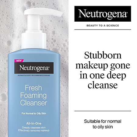 Product Description from Amazon:- Deeply cleanse skin and effectively remove makeup, even waterproof mascara, with Neutrogena Fresh Foaming Facial Cleanser. This all-in-one face wash with Glycerin is suitable for normal to oily skin. This makeup remover and facial cleanser helps remove makeup, even waterproof eye makeup, and leaves skin feeling soft, smooth, and refreshingly clean. The daily face cleanser creates a foamy lather that easily washes away dirt, excess oil, and impurities. Dermatologist- and ophthalmologist- tested.