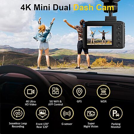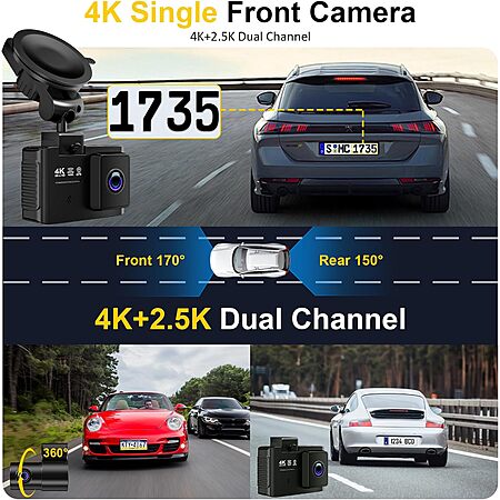 - 4K + 2.5K Dual Recording: Captures Ultra HD 4K (3840*2160P) front and 2.5K rear footage, clearly showing details like road signs and license plates. Features 170° front and 120° rear wide-angle lenses to reduce blind spots.