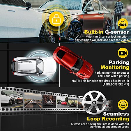 - Parking Surveillance: Records in low-light conditions and activates on vibration/impact detection for vehicle protection when parked.