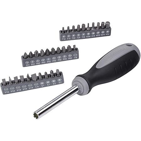 - Chrome-Vanadium Phillips and flat head screwdrivers; 5 inch long ¼-inch ratchet with 8 SAE sockets (1/32, 3/16, 7/32, ¼, 9/32, 5/16, 11/32, 3/8)