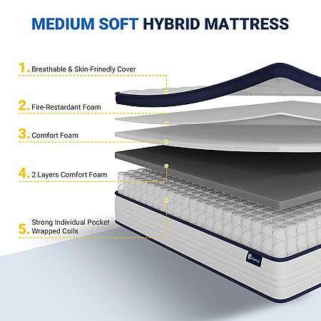 - Universal Comfort: This hybrid mattress suits back, side, and stomach sleepers with its balanced foam and inner spring design. It promotes spinal alignment and pressure relief for all sleeping positions