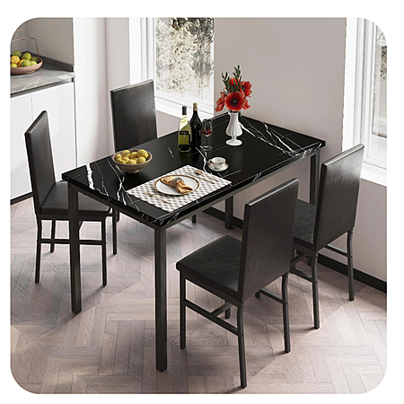 The dining set comes complete with a rectangular table and 4 high-quality dining chairs.