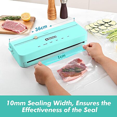 Product Description from Amazon- 【Built-in Bags Storage and Cutter】The Kitchen in the Box vacuum sealer comes with built-in storage that can hold vacuum bags up to 5 meters long. The integrated cutter allows users to create custom-sized bags as needed, making it more convenient and space-saving.