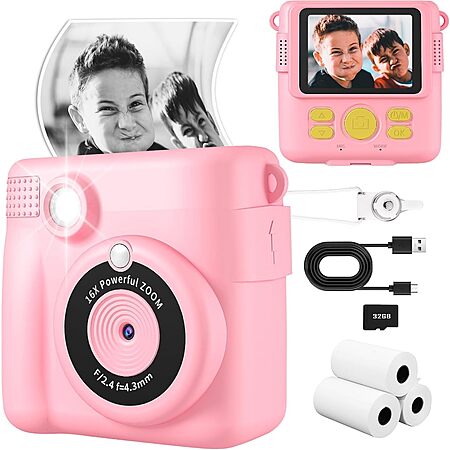 WEEFUN Kids' Instant Print 1080p Digital Video Camera w/ 32GB Micro SD Card (various colors) on sale for $25.49 - 50% off when you enter the coupon code