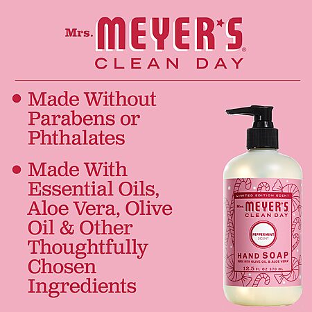 Mrs. Meyer's Clean Day Liquid Hand Soap (Peppermint, Gingerbred or Snowdrop)