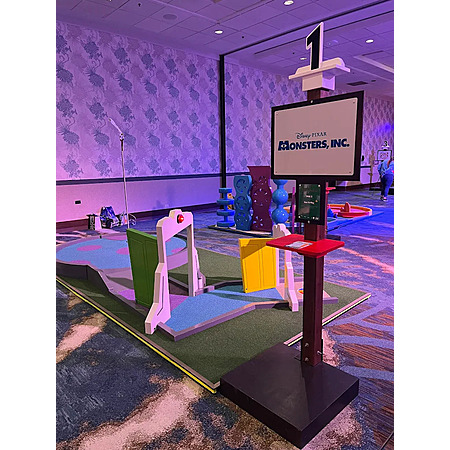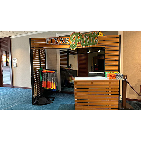 Pixar Putt is a Pixar themed mini-golf course indoors at Anaheim, CA (Pixar Place Hotel near Disneyland) and Garden State Plaza in NJ. All 18 holes will be themed and indoors. Putters and golf balls will be provided. There are also props (e.g. Pizza Planet golf cart), character statues, and possibly live characters in costume to take pictures with.