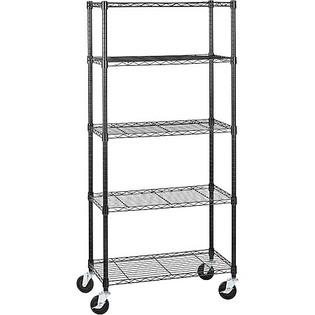 5-Shelf Amazon Basics Adjustable Heavy Duty Storage Shelving Unit on Wheels (Black) for
