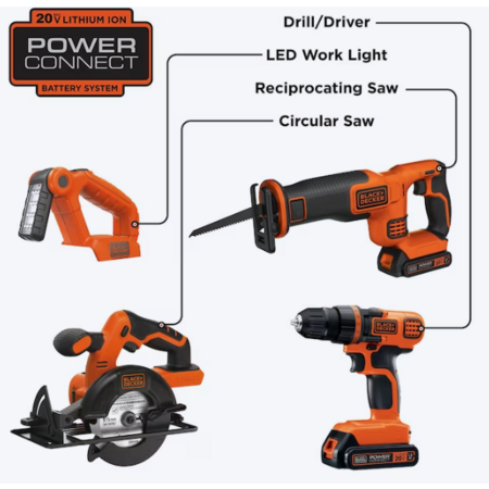 4-Tool BLACK+DECKER 20V MAX Power Tool Kit w/ 2x 1.5Ah Batteries & Charger (BD4KITCDCRL) on sale for