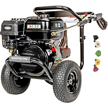 SIMPSON PRESSURE WASHER FOR PROFESSIONALS: The Simpson PowerShot gas power washer cleans decks, driveways, siding, fencing, equipment, and graffiti; The cold water machine is great for contractors; 49-State Compliant (Not for sale in California)